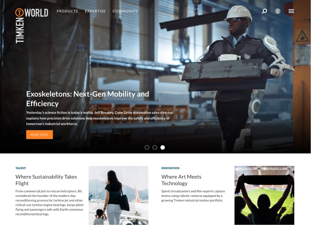 Timken is a global manufacturing company operating in over 42 countries. I led the UX and UI redesign for their international front door.