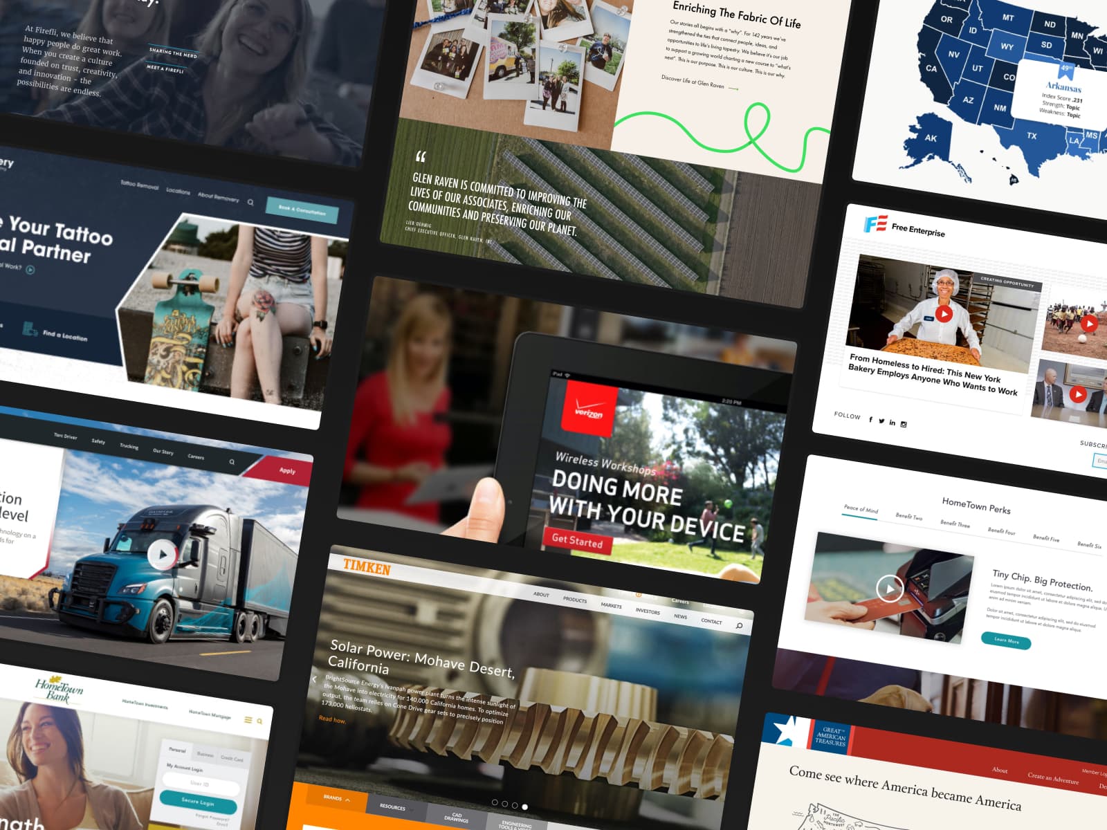 Highlights from projects I've led in past agency work for Fortune 100 and 500 companies like Verizon, Telus, and Timken.
